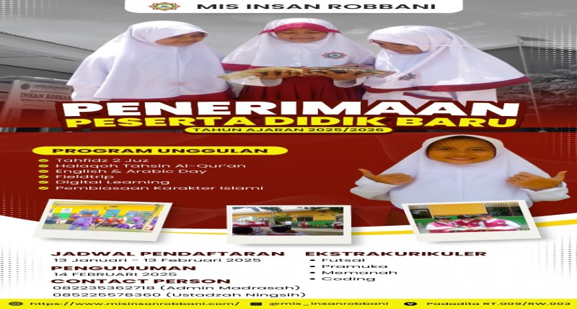 Penerimaan Murid Baru (PMB) MIS Insan Robbani Tahun Pelajaran 2025/2026